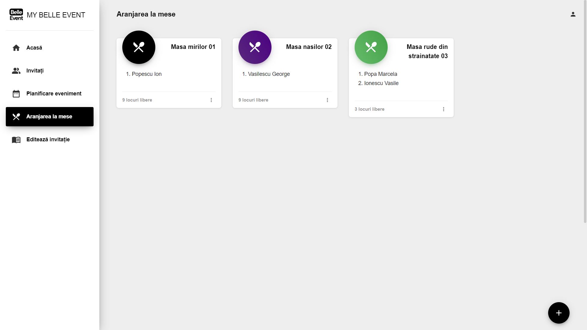 Organizează aranjarea la masă a invitaților de la evenimentului tău folosind MyBelleEvent, aplicație ce ușurează planificarea evenimentului tău. Urmărește tutorialul pentru a vedea pas cu pas adăugarea meselor și distribuția invitaților la acestea.
